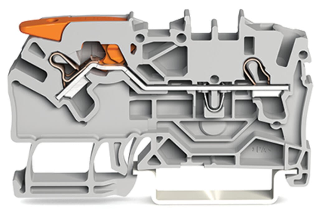 Clema de paso para 2 conductores; 2.5mm; gris; c/palanca y Push-in CAGE CLAMP