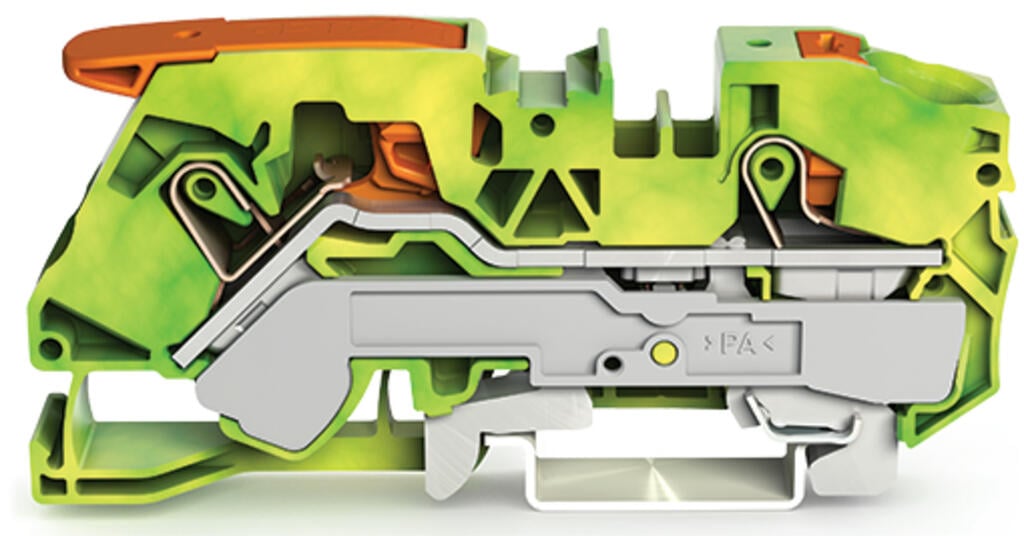 Clema de tierra para 2 conductores; 16mm; verde-amarillo; c/palanca y botón; Push-in CAGE CLAMP