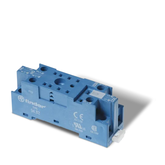 Zócalo con bornes de jaula, color azul, para relés Tipo 60.12. Adecuado para montaje en panel o en carril de 35 mm