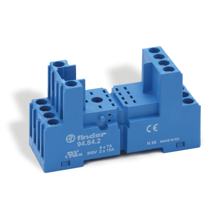 Zócalo con terminales de tornillo a pletina para temporizadores Tipo 85.02 y 85.04. Adecuado para montaje en panel o en carril de 35 mm