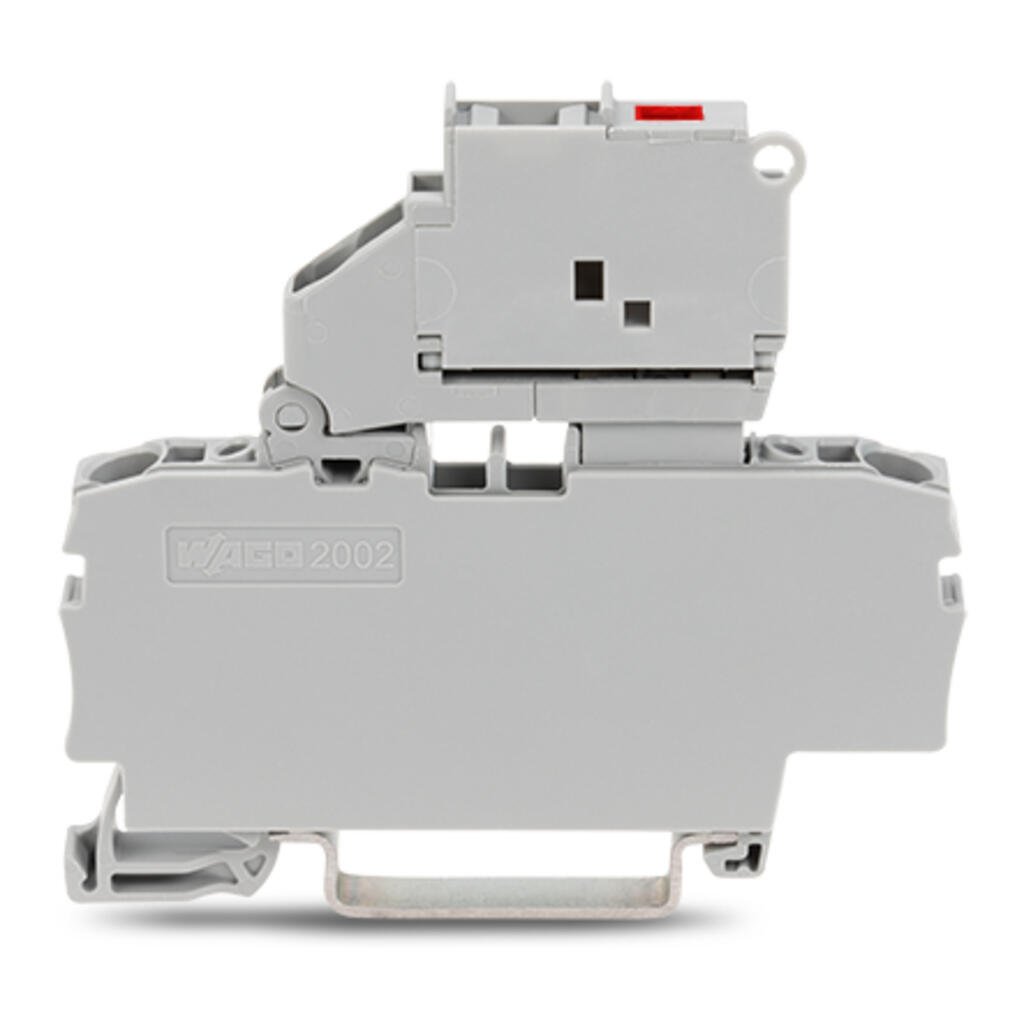 Clema portafusibles para 2 conducotres; con portafusible basculante y placa final; para fuible tipo G 5 x 20 mm; sin indicación de defecto; 2.5mm; gris