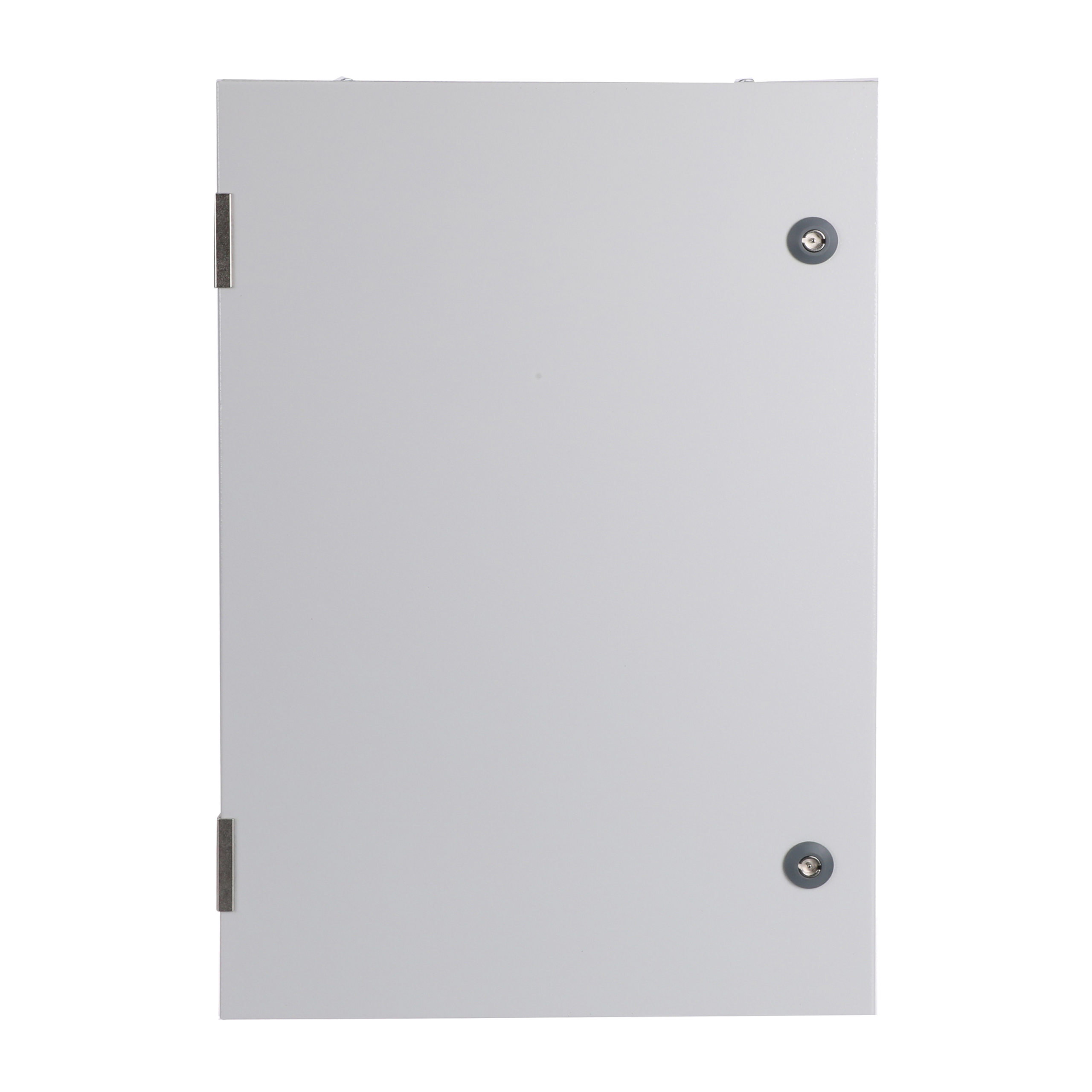 Gabinete vacío con puerta ciega, platina de montaje y tapas pasacables superior e inferior