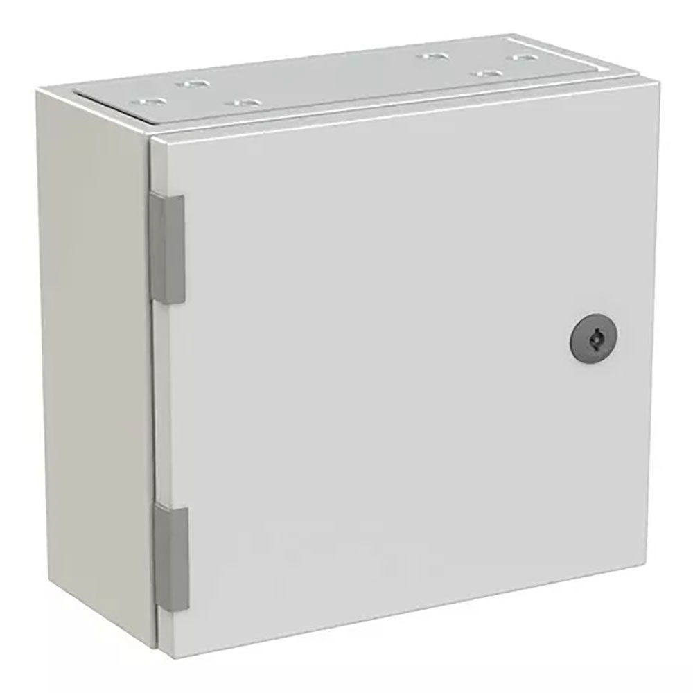 Gabinete vacío con puerta ciega, platina de montaje y tapas pasacables superior e inferior
