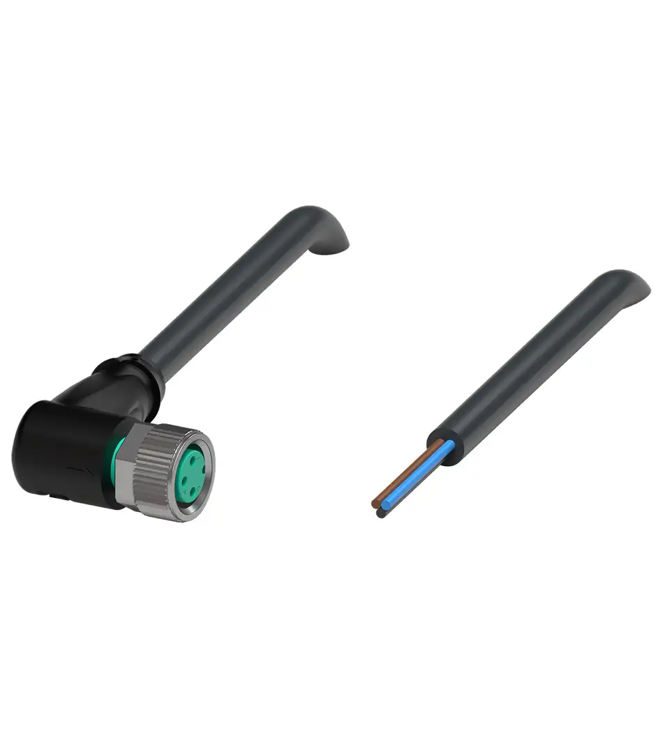 conector hembra con una terminación M8 en ángulo con codificación A, 3 pines, cable PVC negro, homologación UL