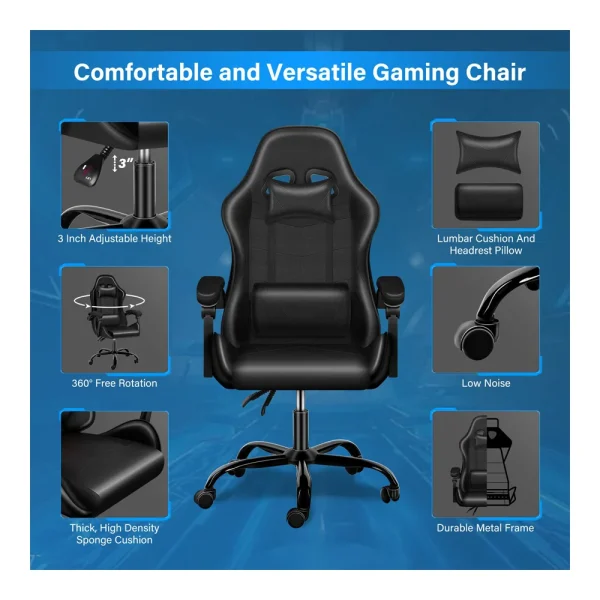 • High Quality The video game chair use high quality materials – durable metal frame, supportive molded foam, soft PU leather and smooth rolling casters.
